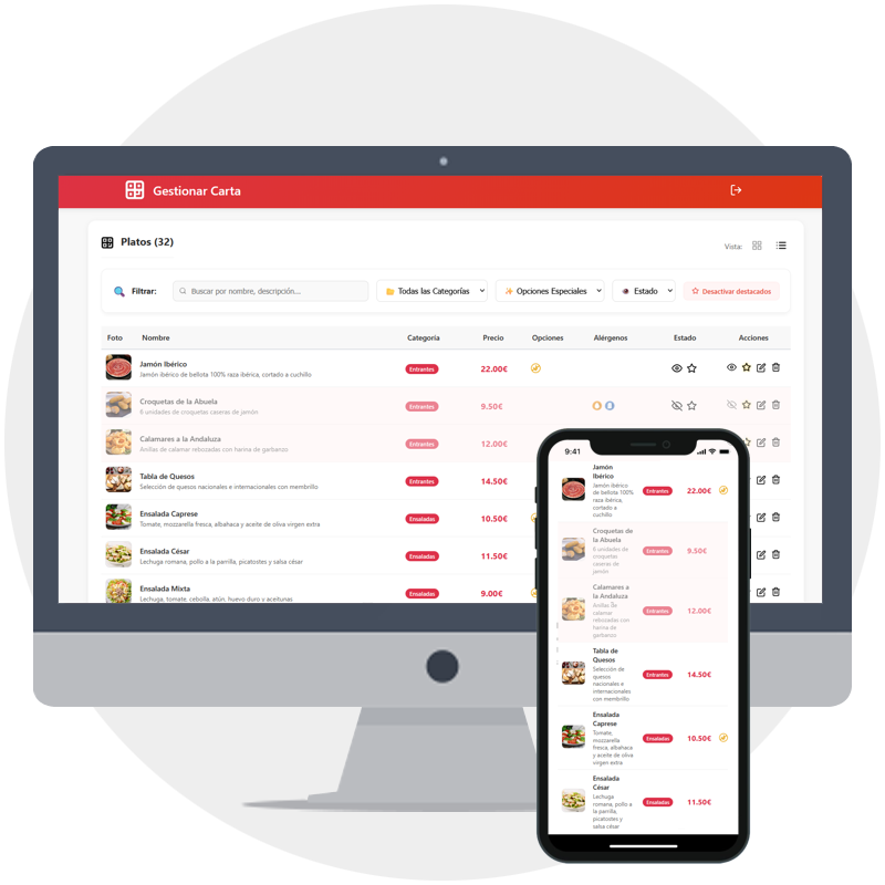 👑 Profesional (€99.90/año): Para restaurantes grandes o cadenas que necesitan panel de control completo para cocina, notificaciones push, analíticas avanzadas y gestión de múltiples ubicaciones.